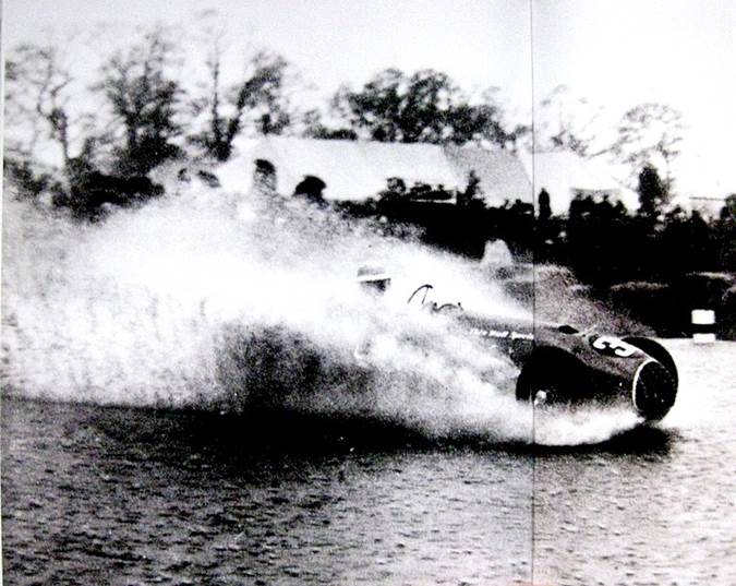 En la Aintree 200 1954, el Ferrari 500 2,5 l nº 3 no hace demasiadas tonterías sobre la lámina de agua gracias al temple de los puños y del pie derecho de Reg. Como dice Rudolf Caracciola, “Cuando se corre por un camino resbaladizo hay que estar siempre atento a las reacciones del automóvil, que sobre el pavimento se comporta como un caballo indómito. Es preciso saber lo que quiere hacer antes de que lo haga, y gobernarlo con movimientos suaves y calmosos. No tan sólo las manos, sino todo el cuerpo, se identifican con el automóvil y contribuyen a dominarlo.”