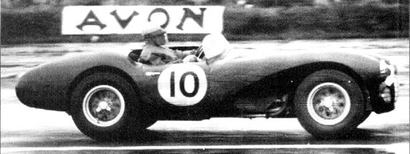 PARNELL, en Silverstone 1954 con un Lagonda V12 nº 10. La Lagonda pertenecía entonces a la Aston Martin, y cuando Carroll Shelby le adelantó con su Aston Martin DBR3, ganando la 3ª plaza, Reg se encargó, más o menos voluntariamente, de cubrirle la espalda de la amenaza de los Jaguar D-type con su pesado Lagonda, que barría la pista de arcén a arcén. Lo hizo tan bien que incluso preservó para sí mismo la 4ª plaza, tras los Aston Martin de Collins, Salvadori y Shelby pero imponiéndose al Lister-Bristol de Scott-Brown y a los Jaguar de la Écurie Écosse.