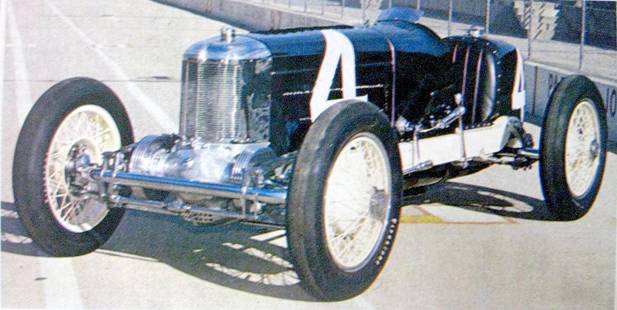 Vistas del Miller 91 Front Drive nº 4, decorado en negro y blanco, con el que Leon DURAY logró una vuelta rápida record en las calificatorias para Indianápolis 1928.