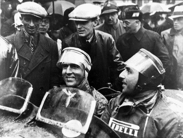 Después de los problemas sufridos por Fangio y Ascari (quien, contando con un minuto de ventaja sobre Nino, tuvo que detenerse para arreglar el encendido y la carburación del Ferrari, perdiendo casi un minuto y medio), nuestro cavaliere dominaba la carrera con holgura. Pero desde su box no tuvieron la delicadeza de advertirle de que Ascari remontaba como un poseso. Al revés, las señales eran de "conservar la mecánica". Así que la cólera del dottore cuando Ascari le dobló a falta de nueve vueltas para el final no es para ser descrita aquí