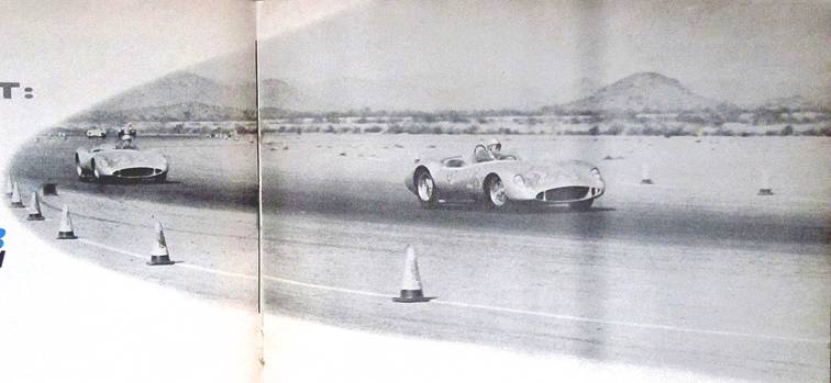 Los dos primeros Scarab en ensayos. Richie Ginther lo probó en Phoenix y en la tercera vuelta rompió el record, marca que rebajó tres veces más en las siguientes cinco vueltas.