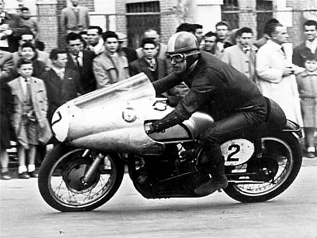Con el nº 12, en el Tourist Trophy de la Isla de Man 1956, donde se clasificó 3º en clase 125 cm3 a lomos de esta Montesa, tras Carlo Ubbiali (MV Agusta) y Marcelo Cama Marqués (Montesa)