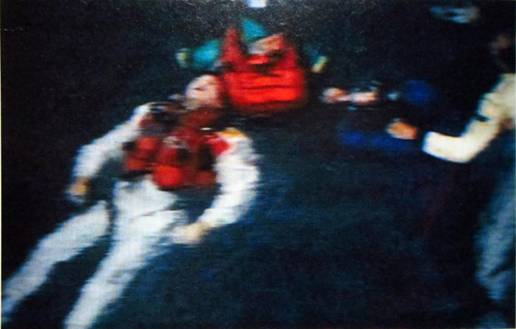El cadáver de CASIRAGHI flota gracias al mae west, pero cuando el médico certificó su muerte, la competición fue inmediatamente suspendida.