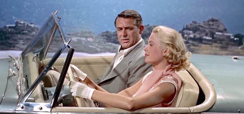 La actriz Grace Kelly conduce un descapotable en una escena de “To Catch a Thief” (1955, Alfred Hitchcock) por la misma carretera en la que sufriría un accidente mortal en 1982