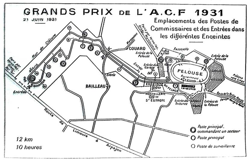 El circuito de Linas-Montlhéry, tal como era en 1931 y cuatro décadas más tarde.