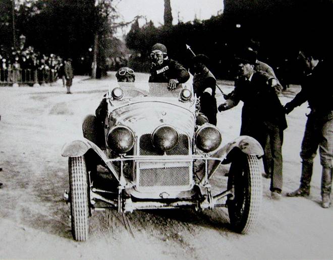 Campari, en la Mil Millas 1929, carrera que ganó por segunda vez (primera foto), aunque esta vez no le acompañaba MARINONI sino otro gran mecánico, Giulio Ramponi, puesto que Attilio oficiaba de navegante de Minoia en otro Alfa Romeo que clasificaron 6º scratch.