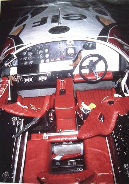GIROUX iba en el asiento central trasero, Guénard en el delantero izquierdo y Pironi en el delantero derecho, el puesto de comandante