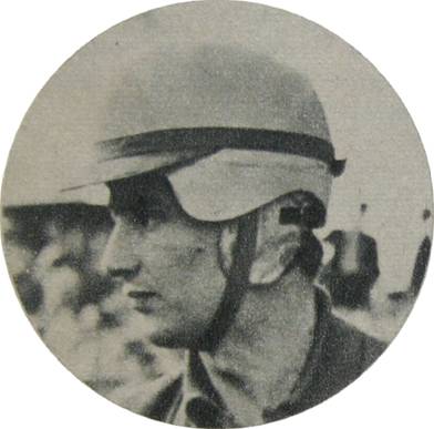 PARKES corresponde al banderazo de Raymond Roche levantando el puño desde la carlinga del Ferrari LM nº 26: acaba de ganar (en colaboración con David Piper) los 1.000 Km de París 1966 en Montlhéry.