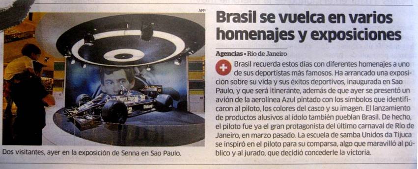 Y en 2014, cuando se cumplía el vigésimo aniversario de su muerte, se creó una itinerante Exposición Ayrton Senna