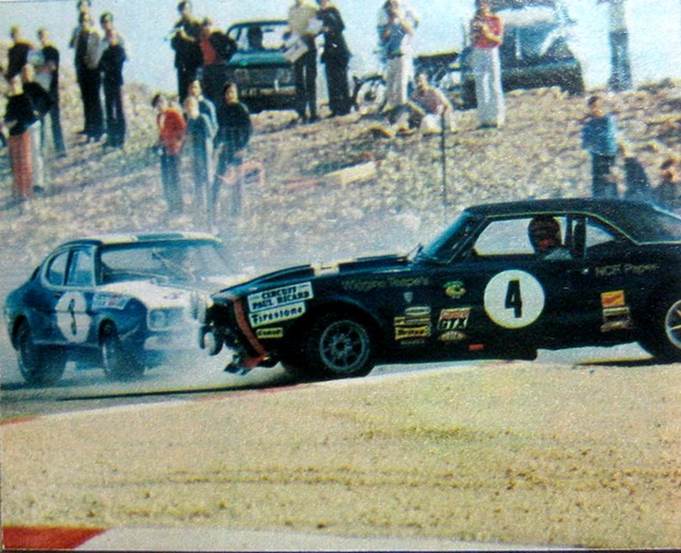 En la tercera foto, STOMMELEN topa su Capri nº 3 con el Camaro nº 4 de Muir, que acaba de reventar el motor, aunque Rolf pudo seguir (con los faros izquierdos rotos)