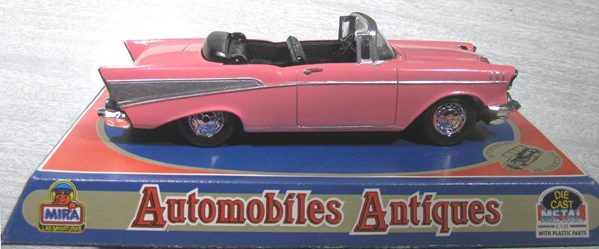 y la maqueta de Juguetes Mira Sociedad Anónima de un cabriolet de 1957