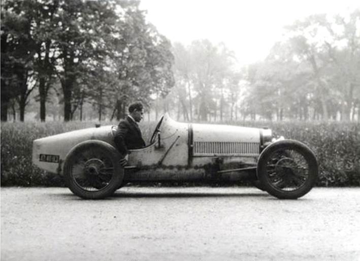 Edouard Grammont ya utilizaba un Bugatti de calle, quizá un Type 35A de 75 HP. Aquí lo vemos en 1928