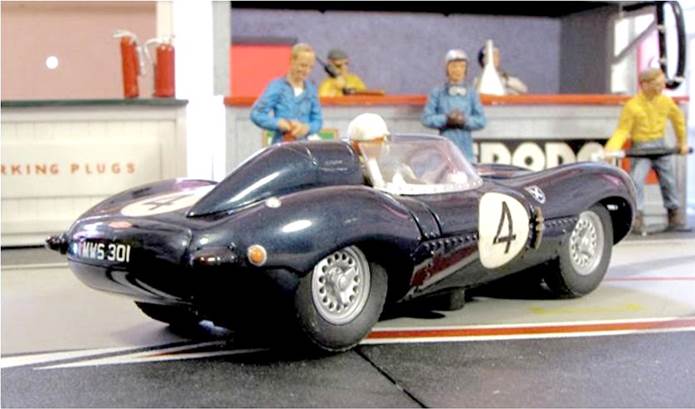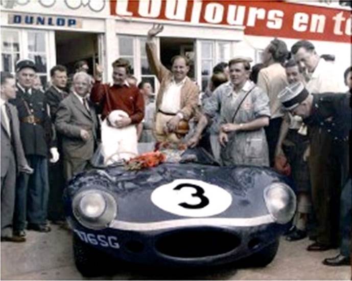 Con el Jaguar D-type XKD 606 ex oficial, ex Écurie Écosse, que en la segunda foto vemos restaurado en 1987, FLOCKHART ganó en Le Mans 1956 y 1957 y en Chaterhall 1958.
