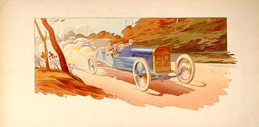 y en una acuarela de Ernest Montaut, que celebra su victoria en el Grand Prix del ACF 1912