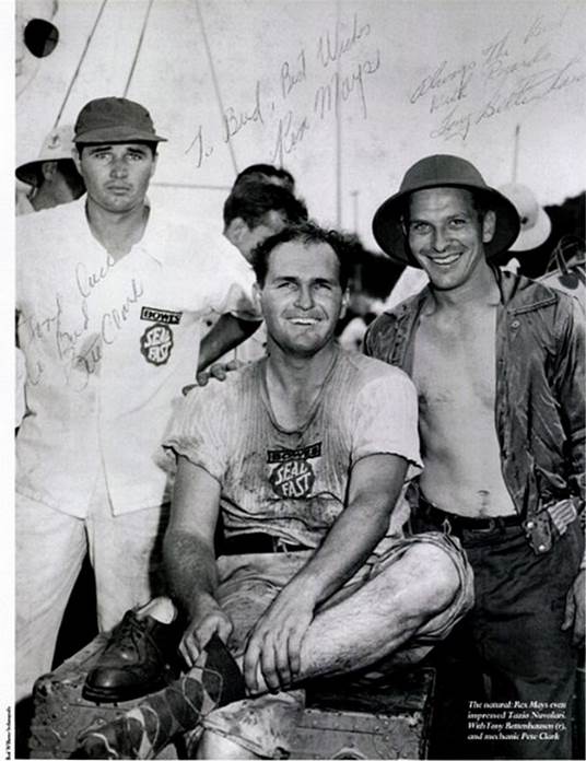 Rex MAYS y Tony Bettenhausen (1916-1961) han firmado autógrafos en esta fotografía que los muestra acalorados tras una carrera, pero siempre sonrientes