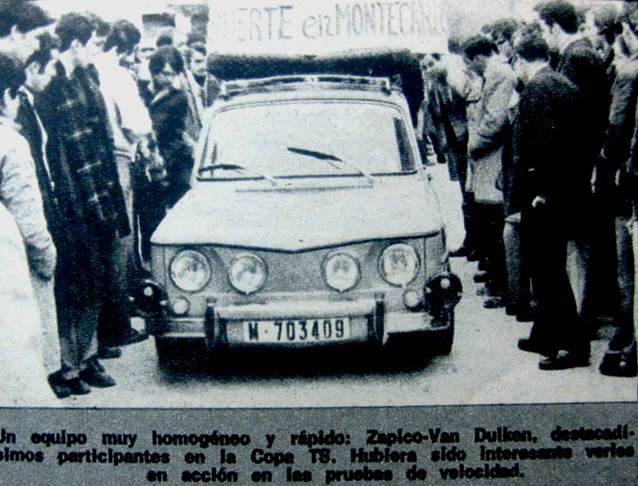 En 1970 hace Zapico el Rallye de Monte-Carlo con un R8 TS y secundado por VanDulken, aunque no llegaron muy lejos. Ambos siguieron participando ese año en la Copa Nacional Renault 8 TS (Gerardo VanDulken fue el campeón), pero, a media temporada, Zapico se compró un R8 Gordini con el que ganaba el Rallye León de Carranza.