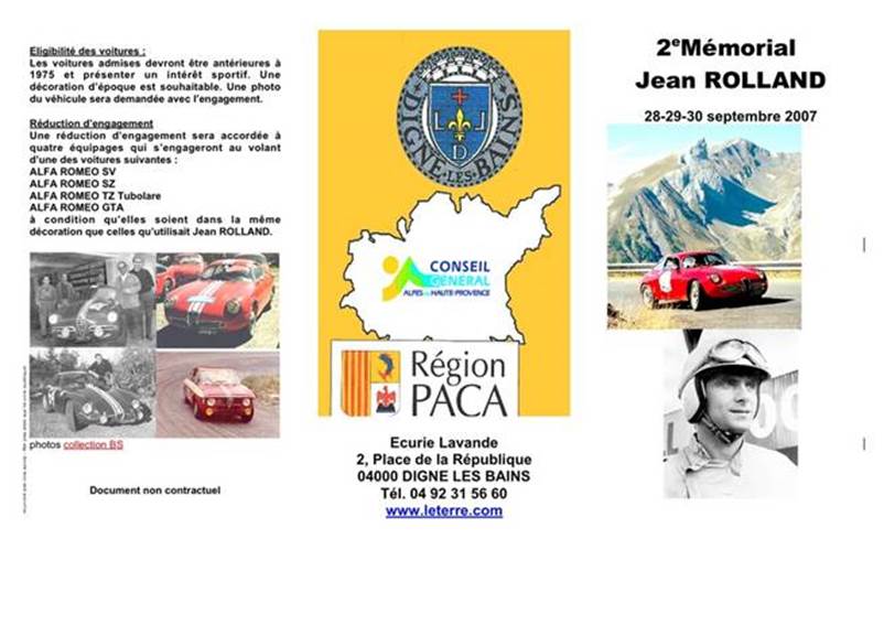 Jean-Charles Rolland fue un gran piloto de rallies, circuitos y carreras en cuesta, modalidades que desarrolló entre 1954 y 1967, acumulando numerosas victorias en su palmarés. Había nacido el 27 de Julio de 1935 en Digne-les-Bains (Alpes de Alta Provenza) y estaba especializado en Alfa Romeo (Giulietta SV, SZ y TZ), aunque había debutado con Peugeot y desde 1961 condujo también para Citroën (DS).