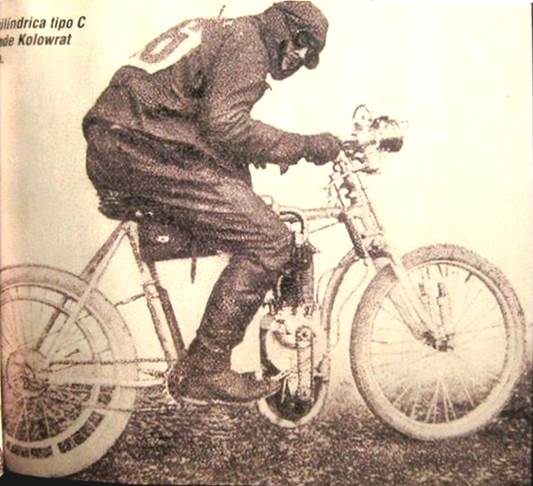 Sascha KOLOWRAT nos mira por encima del hombro mientras cabalga una Laurin & Klement tipo C de carreras (sin guardabarros)